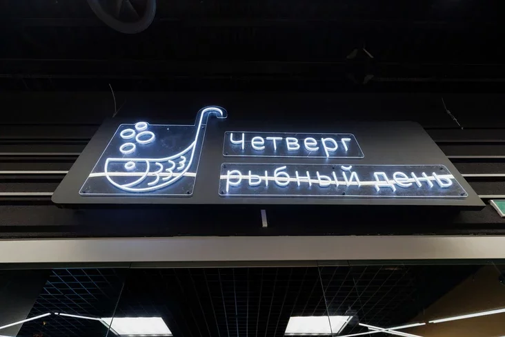 Асобная секцыя выдзелена пад рыбныя паўфабрыкаты: пельмені, палачкі, тэфтэлі з фарэлі, фішболы і мідыі ў марынадзе. Сярод супоў — том кха, том ям з морапрадуктамі і боршч з велізарным кавалкам фарэлі. З незвычайнага — філе мінтая пад сырам.