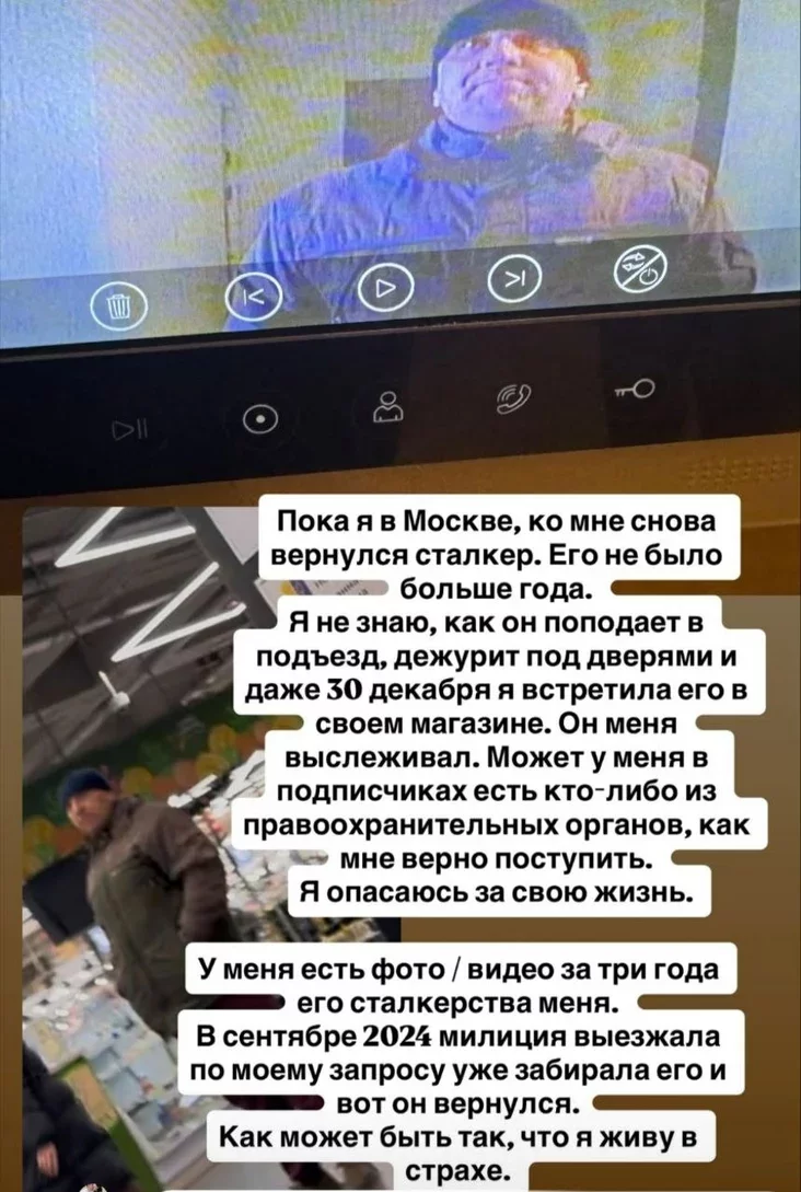 Нядаўна блогерка ездзіла ў Маскву і падчас вандроўкі дзякуючы камерам відэаназірання ў сваім пад’ездзе пабачыла, што мужчына зноў каравуліў ля яе дзвярэй.
