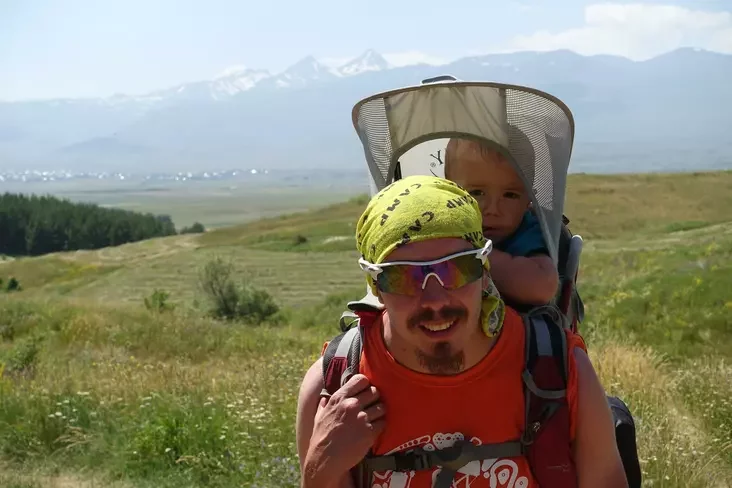 «Да трох гадоў у сына на рахунку было ўжо 22 наведаныя краіны. У Ісландыі мы жылі ў палатках пры тэмпературы мінус 9 градусаў, а яму было ўсяго 2,5 года. Цягалі з сабой дзіцячае харчаванне, падгузнікі. У Арменіі я з ім за спінай прайшоў горны маршрут 1‑й катэгорыі складанасці. У мяне ёсць спецыяльная пераноска фірмы Osprey, у якой дзіця сядзіць як у заплечніку».