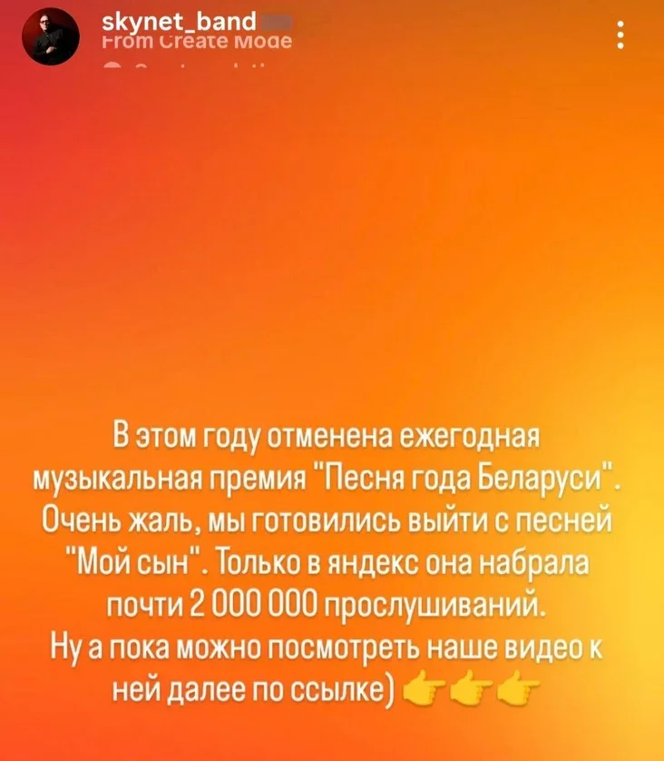 Пра адмену распавёў у інстаграме лідар беларускага рок-гурта Skynet Іван Панамароў. Ён актыўна падтрымлівае вайну ва Украіне, нават прысвяціў песню «Я жывы» сябру, які ваяваў на баку Расіі (і загінуў у 2024 годзе пад Харкавам).
