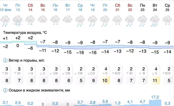 Надвор'е ў Мінску на наступныя дні паводле gismeteo.by