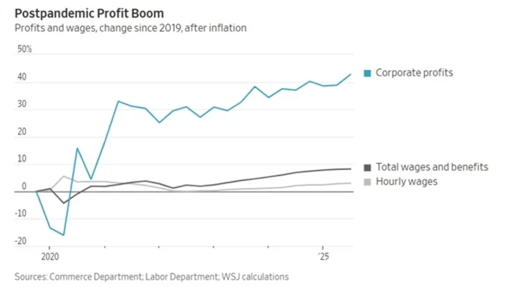 Сітуацыя абвастрылася пасля пандэміі Covid-19. Хоць кароткачасовы дэфіцыт кадраў вымусіў працадаўцаў падняць заробкі, інфляцыя з’ела большую частку гэтага прыросту. З канца 2019 года рэальныя пагадзінныя заробкі (пасля ўліку інфляцыі) выраслі ўсяго на 3%, а сукупная аплата працы — на 8%. У той жа час карпаратыўныя прыбыткі ўзляцелі на каласальныя 43%.
