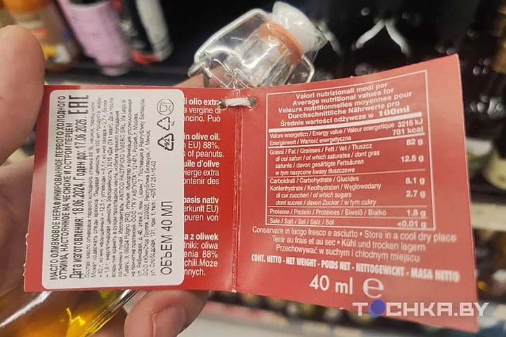 У адным з мінскіх супермаркетаў заўважылі незвычайны прадукт — аліўкавы алей, кошт якога ў пераліку на літр дасягае амаль 1000 рублёў, піша Tochka.by.