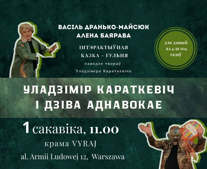 Раніцай 1 сакавіка ў Варшаве зладзяць інтэрактыўную казку-гульню для дзяцей ад 4 да 104 гадоў «Уладзімір Караткевіч і дзіва аднавокае».
