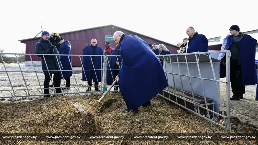 Узяўшы вілкі і падняўшы пласт саломы, Лукашэнка пад ёй знайшоў непрыбраны снег і лёд, што стала нагодай для прачытання натацыі падначаленым.