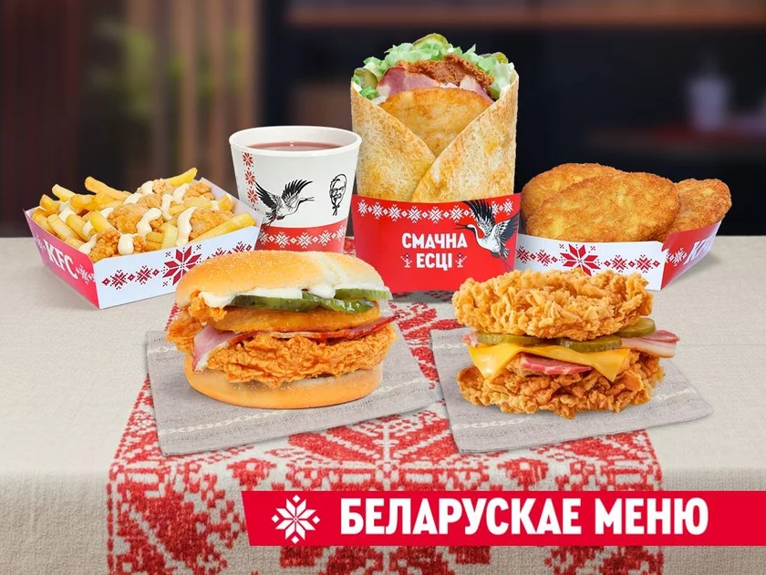 Папулярная сетка хуткага харчавання KFC пра запуск новага меню ў беларускім стылі афіцыйна аб’явіла 3 сакавіка ў сваіх сацсетках, прычым для поўнага заглыблення ў нацыянальную атмасферу зрабіла гэта на беларускай мове, заўважыў «Тэлеграф».
