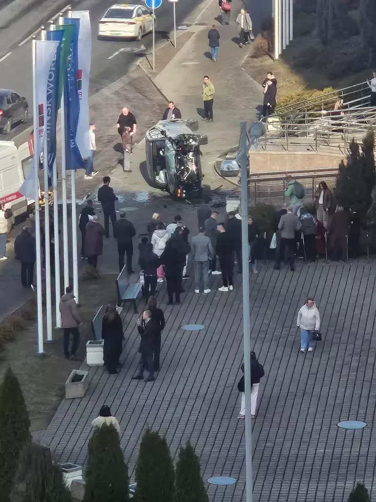 Сёння ў сеціве з'явіліся фотаздымкі ДТЗ у Мінску — каля Dana Mall BMW урэзалася ў агароджу і перакулілася. Цяпер ДАІ распавяло падрабязнасці.