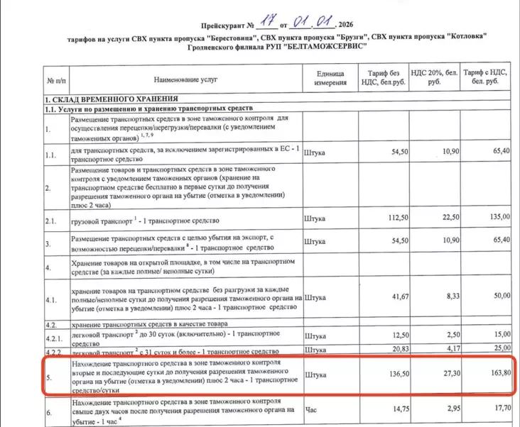 У панядзелак мытнікі паведамілі, што аплата за захоўванне фур «у разы ніжэйшая за вызначаную раней». Для прычэпаў і паўпрычэпаў — у 7 разоў, а для цягачоў — у 2—3 разы, але дакладныя лічбы не называліся.