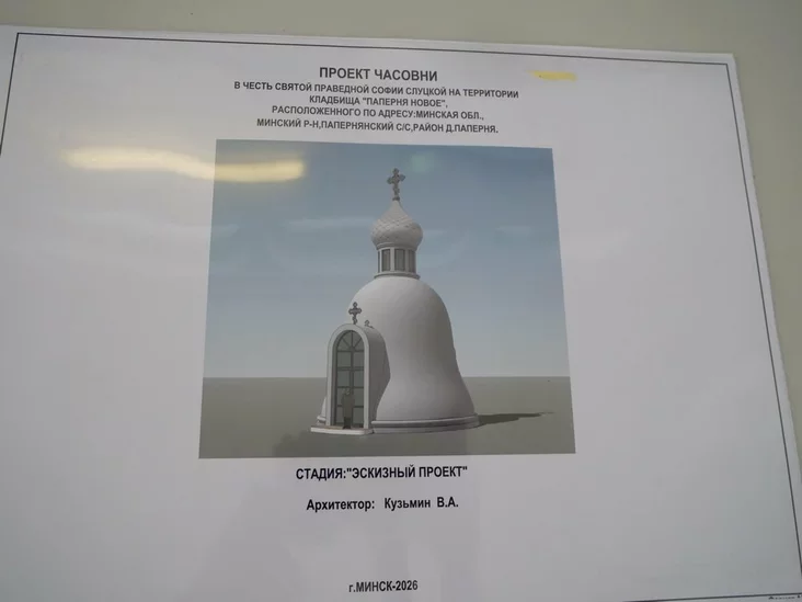 Капліцу ў гонар праведнай Сафіі Слуцкай прапанавалі ўзвесці на могілках каля вёскі Паперня Мінскага раёна. Яе незвычайная форма, відаць, збянтэжыла нават царкоўных экспертаў.