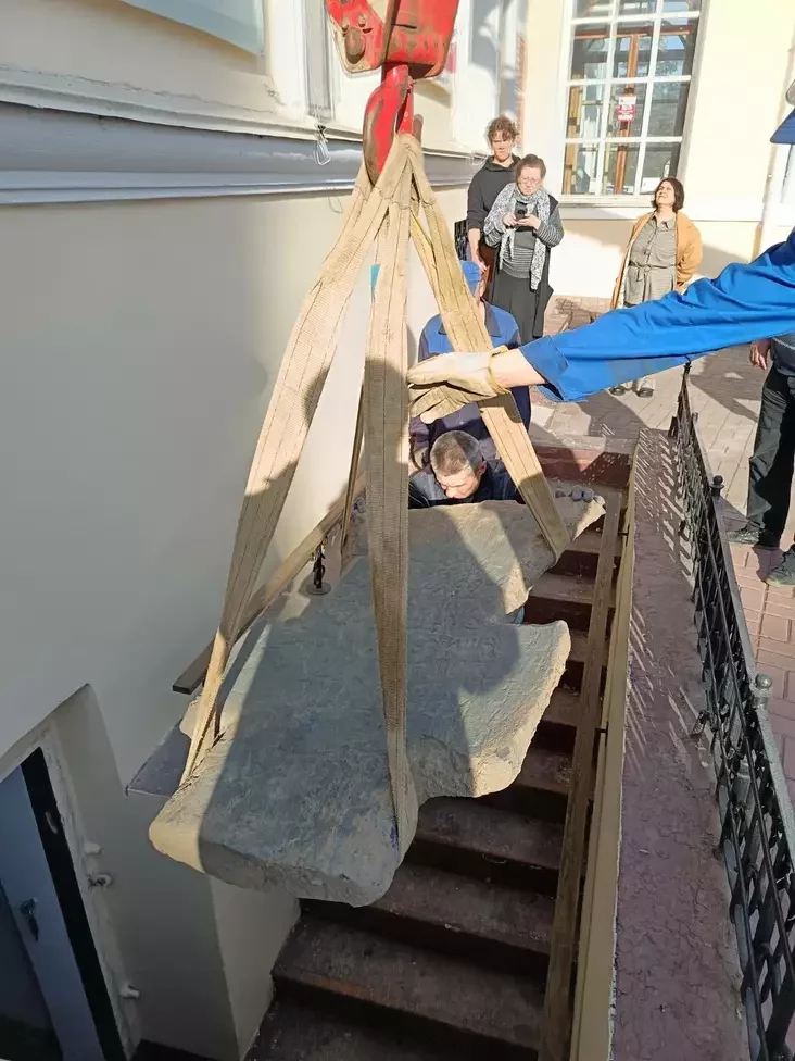 Транспартаванне каменнага крыжа ў абласны музей. Фота: Віцебскі абласны краязнаўчы музей