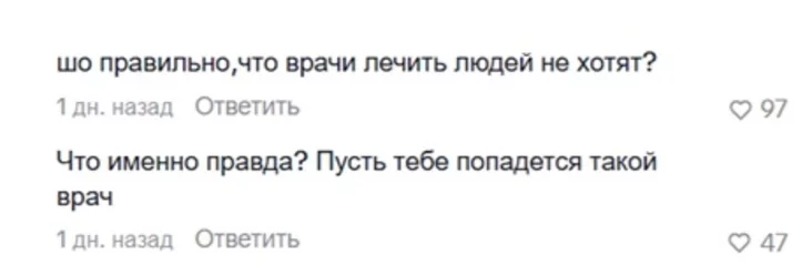 «Што менавіта праўда? Няхай табе пападзецца такі доктар», «Што правільна? Што дактары лекаваць людзей не хочуць?»