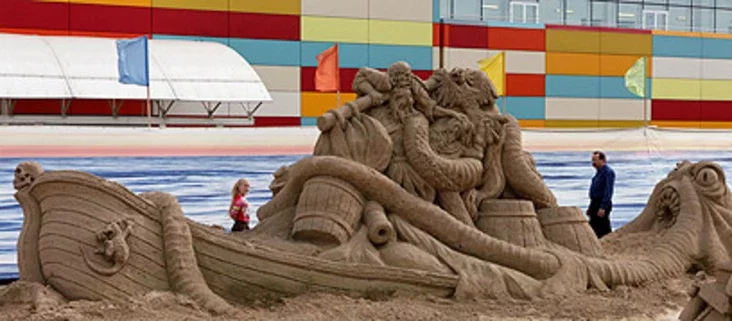 У нашай усходняй суседкі таксама свята на вольным паветры. У Краснаярску пабудавалі нават не дом на пяску, а цэлы горад. Усё ад павагі да Дыснэя і яго персанажаў. Нават, як бачыце, подзвіг карыбскіх піратаў увекавечылі… прынамсі, на дзень-два.