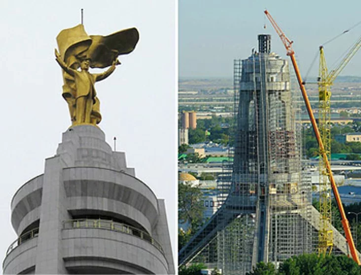 Пакуль у Сібіры будуюць скульптуры з пяску, у Туркменістане руйнуюць бетонныя. Рэч у тым, што па загадзе цяперашніх улады ў гэтай сярэднеазіяцкай краіне дэмантуюць пазалочаную статую ўсетуркменскага бацькі. Колісь пастамент разам з помнікам узносіўся на вышыню 75 метраў. Цяпер, праз чатыры гады па смерці былога кіраўніка краіны Сапармурата Ніязава, помнік амаль зраўналі з зямлёю. І ўсё адно ёсць на што паглядзець.