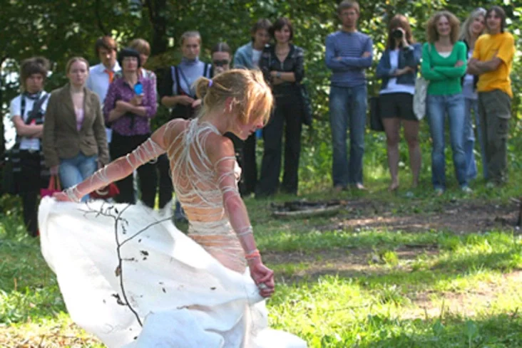 Перфоманс – мастацтва на стыку тэатра, жывапісу, паэзіі і скульптурнага мастацтва. Паводле традыцыі апошні выступ перфомераў гледачы ўбачылі на ўлонні прыроды ля Вячы.