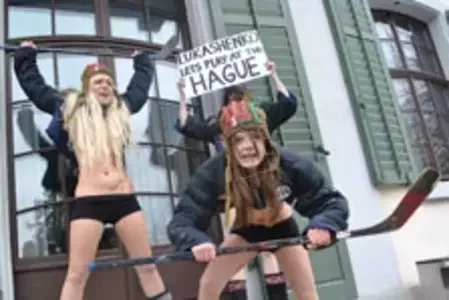 «Лукашэнка, згуляем у хакей у Гаазе?» — новая акцыя Femen81