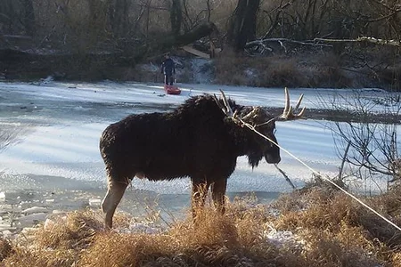 Ратавальнікі выцягнулі лася, які праваліўся пад лёд ФОТА4