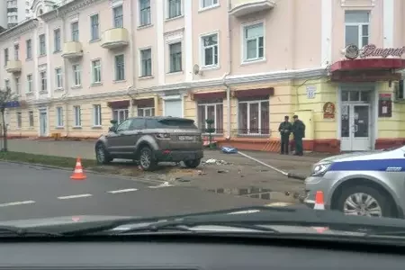У Гомелі расіянін на Range Rover вылецеў на тратуар, знёс святлафор і збіў трох пешаходаў12