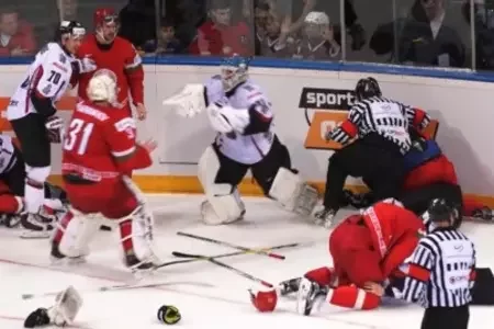 Мегадрака произошла на хоккейном матче Латвия-Беларусь. Наши победили13