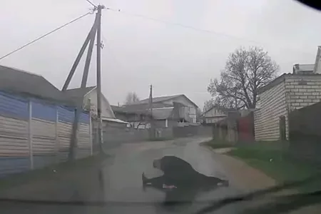 Мужчына ў Калодзішчах спыніў аўтамабіль і сеў перад ім на шпагат ВІДЭА11