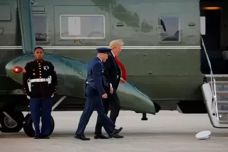 Трамп уступіў у барацьбу з ветрам дзеля фуражкі ваеннага ВІДЭА11