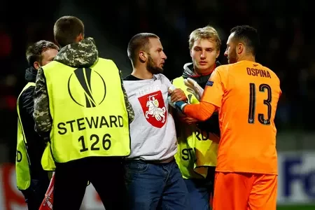 «Доўбень!» — Ганна Бонд асудзіла хлопца, які выбег на поле са сцягам58