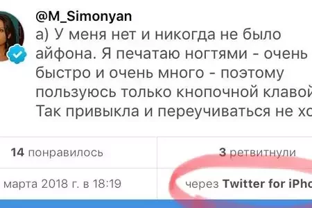 Крамлёўская прапагандыстка Маргарыта Сіманьян напісала твіт аб адсутнасці ў яе айфона з прылады на iOS21