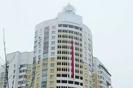 На 22-павярховым гмаху ў Віцебску павесілі велізарны бел-чырвона-белы сцяг ФОТА