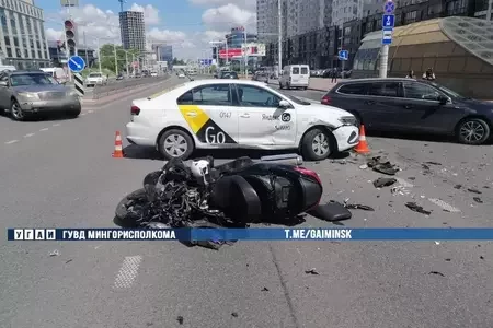 На проспекте Дзержинского в Минске таксист сбил мотоциклиста
