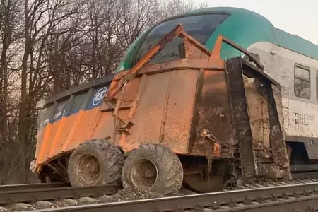Цягнік «Магілёў-Мінск» урэзаўся ў трактарны прычэп з гноем на чыгуначным пераездзе