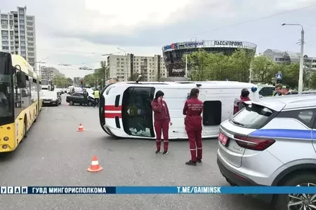 На улице Сурганова в Минске перевернулась «скорая помощь»