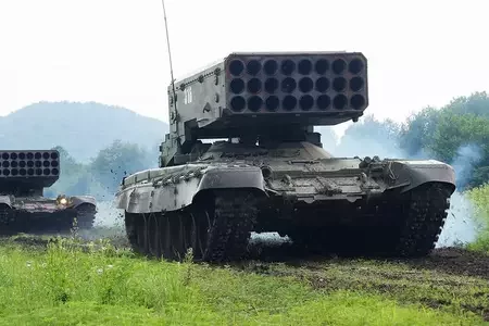 Украинцы показали уничтожение российской тяжелой огнеметной системы «Солнцепек» украинским противотанковым комплексом «Стугна»
