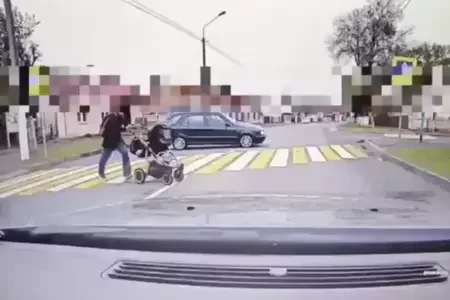 В Верхнедвинске автомобилист едва не сбил женщину с коляской на пешеходном переходе ВИДЕО