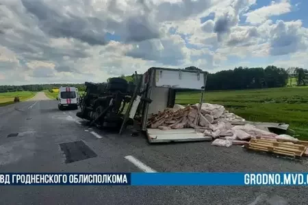 В Гродненском районе перевернулась фура с мясом