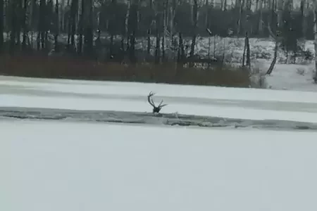 У Чавускім раёне ўратавалі аленя, які патанаў на возеры