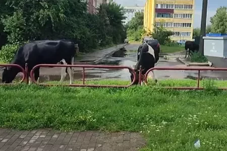 Помните, как по Могилеву гулял табун лошадей? Теперь в том же дворе пасется стадо коров ВИДЕО3