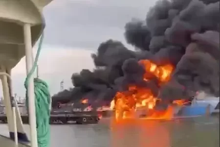 Украінцы нанеслі ўдар па пароме з палівам у Керчанскім праліве. Паром затануў1