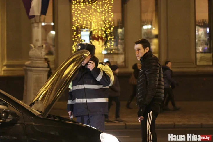 Kala Kastryčnickaj supracoŭniki DAI spynili niekalki aŭto, stary «Folksvahien Pasat» adahnali na chodniki, raźbirajucca z kiroŭcam. Aŭto, što stajała z padniatym kapotam, adahnali pad restaran «Hości», paviedamlajuć karespandenty «Našaj Nivy».