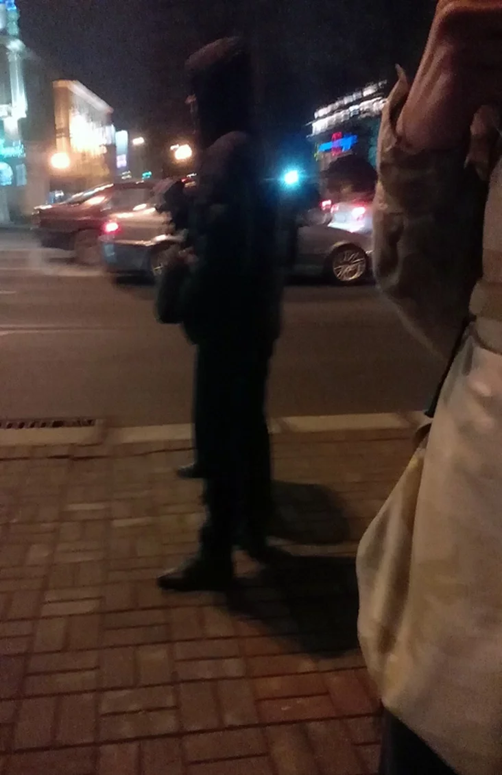 Na pierasiačeńni praśpiekta i vulicy Janki Kupały zaŭvažanyja supracoŭniki ŭ cyvilnym. Siarod ich major Hryščanka z Centralnaha RUUS, viadomy pa razhonach apazicyjnych akcyj.