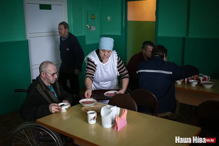 «Pakul my šmat ludziej nie biarom — im i samim treba adaptavacca, i sanitarkam da novych žycharoŭ treba pryvyknuć. Kali my tolki adkrylisia, to zavieźli piaciarych — i amal paŭtara miesiaca nikoha bolš nie brali. Pryvykali adzin da adnaho i da pracy. Dyj pracavać sanitarkaj nie kožny zmoža: praca ciažkaja i, ščyra kažučy, brudnaja. Šmat ich užo pamianiali», — raspaviadaje Alena Valancinaŭna Dubovik, dyrektarka doma-internata.