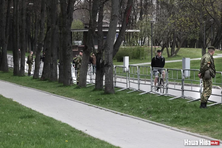 Mierapryjemstva pačałosia ŭ Parku Pieramohi, i jaho było ciažka nie zaŭvažyć. Terytoryja parku była ačeplenaja stužkami i inšymi abmiežavańniami, a kožnyja 10-15 mietraŭ stajaŭ vajskoviec unutranych vojskaŭ, jaki sačyŭ, kab nichto nie prabieh biez vobšuku.