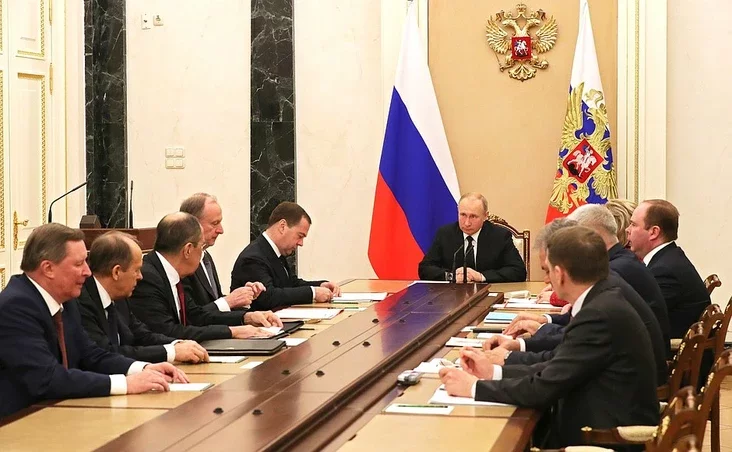 Prezident Rasii Uładzimir Pucin abmierkavaŭ z pastajannymi členami Rady biaśpieki Rasii svaje najbližejšyja kantakty z prezidentami Biełarusi, Turcyi i Irana, a taksama šerah unutryrasijskich pytańniaŭ, paviedamlaje TASS.