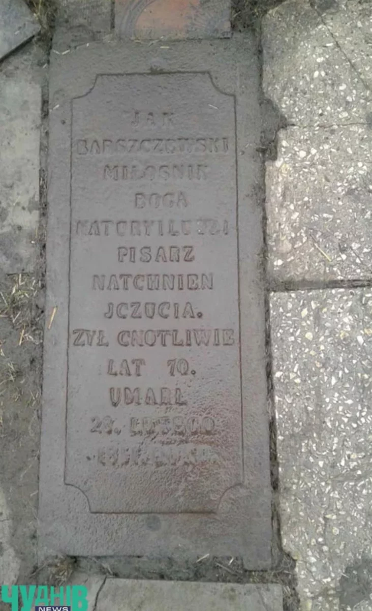 Nadmahilnaj plitoj biełaruska-polskaha piśmieńnika Jana Barščeŭskaha, pachavanaha va ŭkrainskim miastečku Čudnaŭ Žytomirskaj vobłaści, zaapiekavałasia miascovaja polskaja hramada, piša «Radyjo Svaboda».