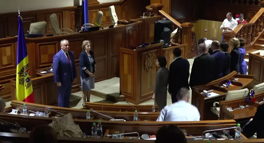 Pierad hałasavańniem deputataŭ Sandu zajaviła: «Dyktatar paŭ. Ź siońniašniaha dnia aliharchičny režym — u apazicyi».