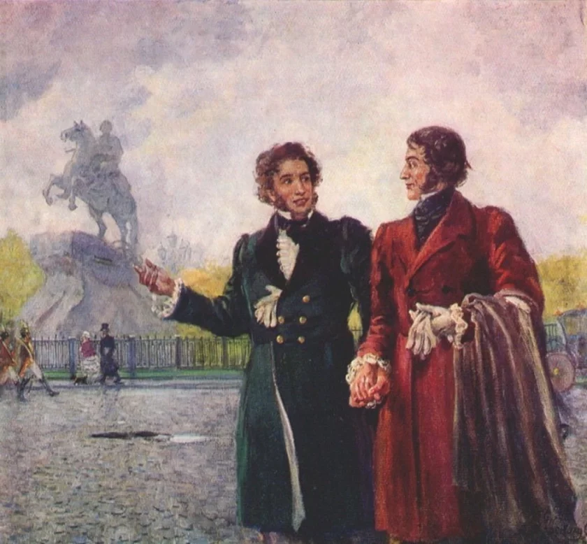 Puškin siabravaŭ ź Mickievičam, kali toj u 1820-ja hady žyŭ u Pieciarburhu. U siabroŭstvie dvuch hienijaŭ nie było ani zajzdraści, ani supiernictva, kožny ź ich padkreślivaŭ vielič inšaha. «A viedaješ, brat, hety palak zatknie ciabie za pojas», — skazaŭ adnojčy Puškinu paet Vasilij Žukoŭski. «Jon užo zatknuŭ mianie», — adkazaŭ Puškin.
