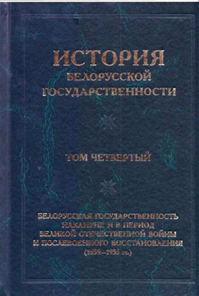 Historyja biełaruskaj dziaržaŭnaści. U 5 t. T. 4. Biełaruskaja dziaržaŭnaść napiaredadni i ŭ pieryjad Vialikaj Ajčynnaj vajny i paślavajennaha adnaŭleńnia (1939-1953 hh.) / A. A. Kavalenia [i inš.]; adk. red. toma N. B. Nieściarovič; Nac. akad. navuk Biełarusi, In-t historyi.