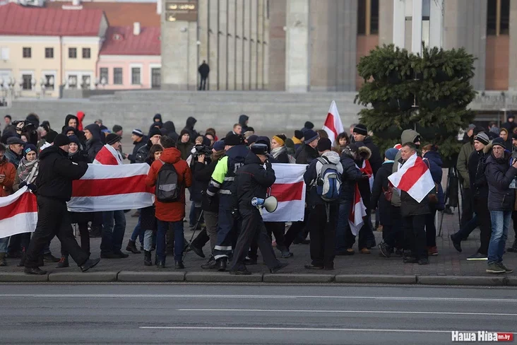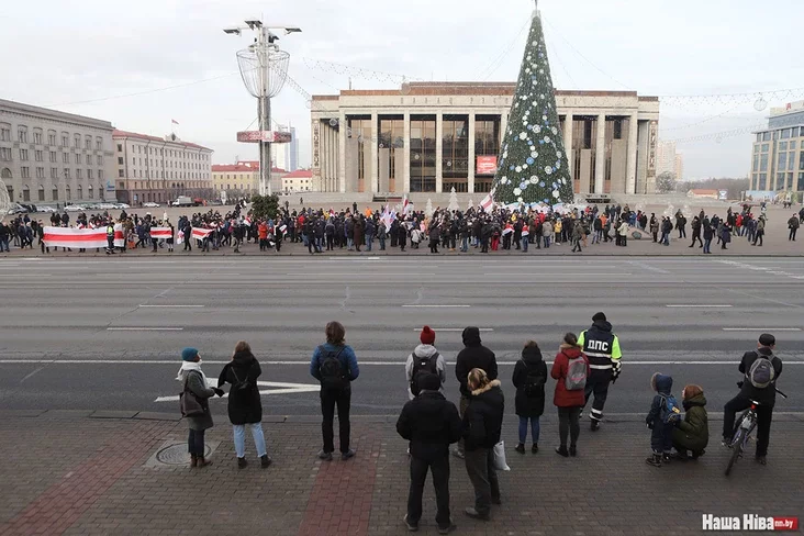 U rajonie Kastryčnickaj płoščy — niekalki dziasiatkaŭ, paviedamlaje karespandent NN. Udzielniki biarucca za ruki. Kala cyrka — kala 80 čałaviek.