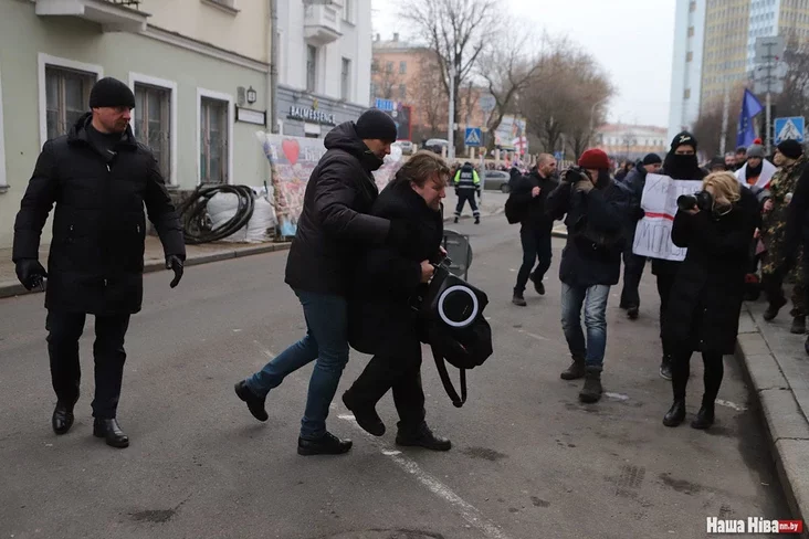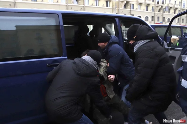 Na Kastryčnickaj kala 300 čałaviek. Jašče kala sta čałaviek stajać łancuhom z druhoha boku Milicyja advodzić ludziej ad prajeznaj častki. Milicyjant ź miehafonam chodzić u atačeńni troch «cyvilnych». Jany adšturchoŭvajuć usich, chto imkniecca niešta skazać milicyjantu.