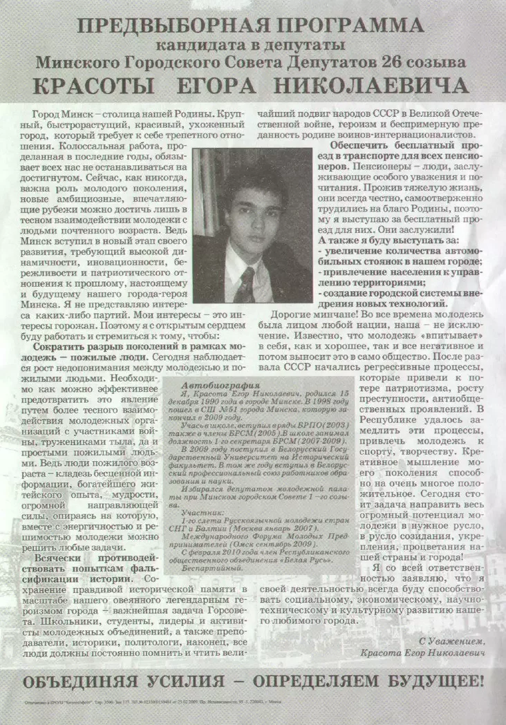 «Po ironii sud́by, buduči užie pri roždienii «do mozha kostiej» russkim čiełoviekom, ja rodiłsia i vyros v Biełarusi, kotoraja po ironii sud́by k mojemu soznatielnomu vozrastu javlałaś užie tak nazyvajemym niezavisimym hosudarstvom», — pisaŭ Jahor Krasata na adnym z «ruskamirskich» sajtaŭ.
