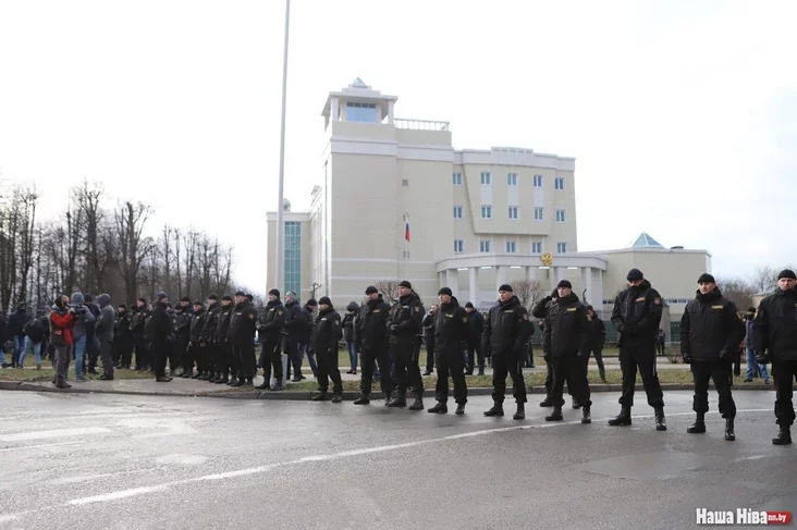 Kala pasolstva Rasii znachodzicca kiraŭnictva staličnaj milicyi. Padychody da budynka pierakrytyja łancuhom amapaŭcaŭ.