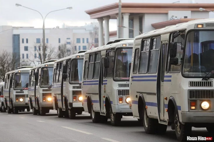 Śpiecnaz u aŭtobusach byŭ u poŭnym abmundziravańni.